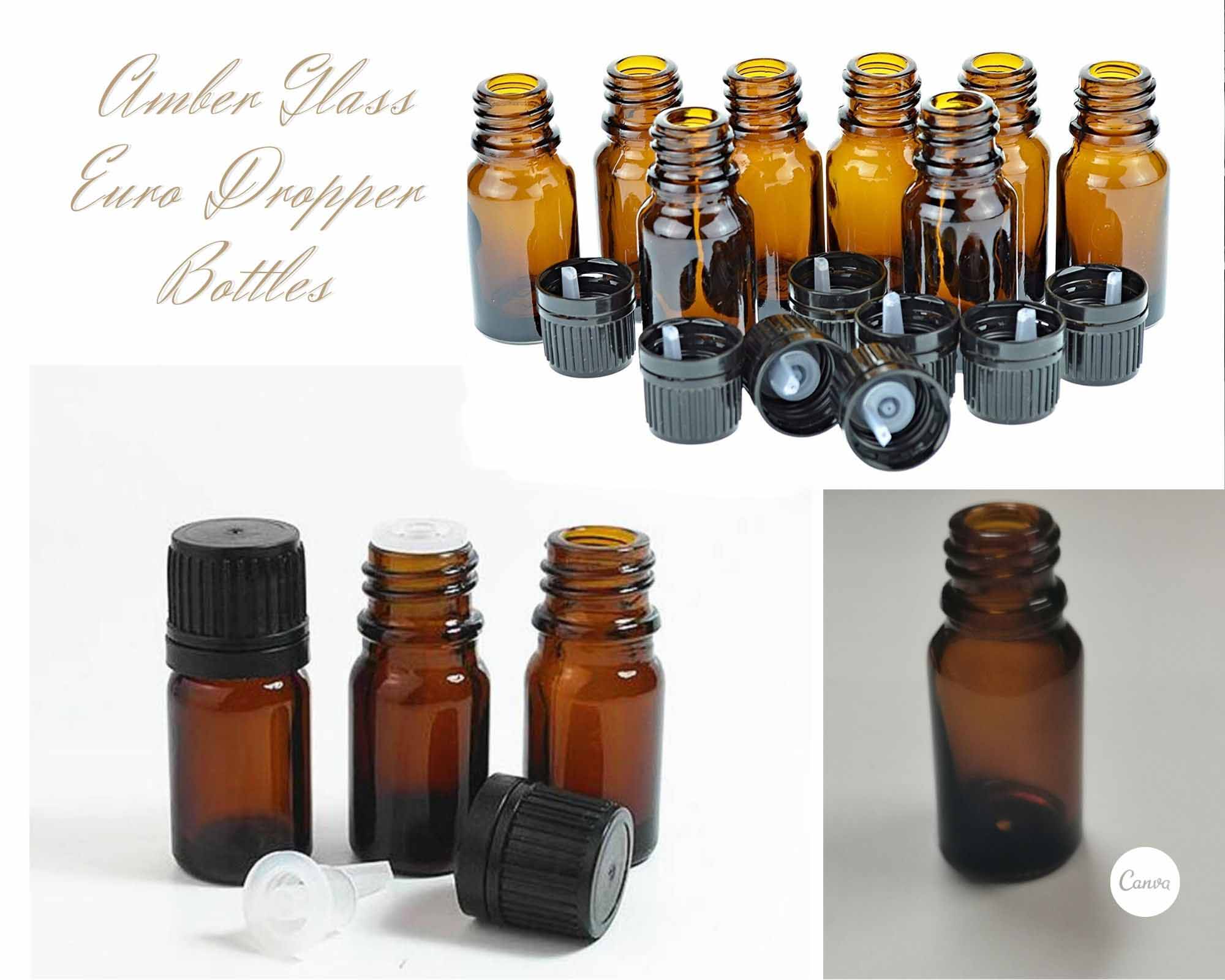 Flacons compte-gouttes Euro en verre ambré de 10 ml Ils sont parfaits pour contenir des produits d'aromathérapie, des huiles parfumées, des soins de beauté et des parfums. Le verre ambré filtre les ultraviolets, ce qui est idéal pour protéger les matériaux photosensibles.