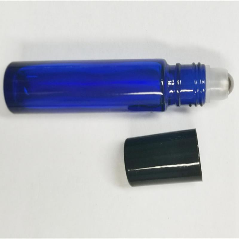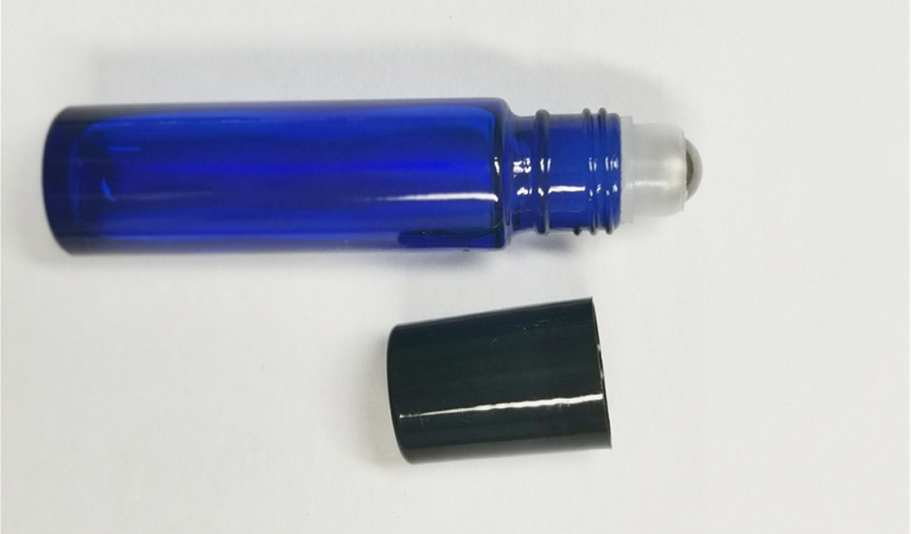 Flacons roll-on en verre bleu cobalt de 10 ml avec bouchon noir