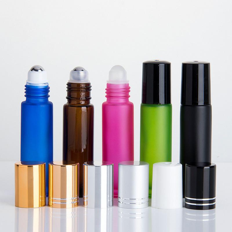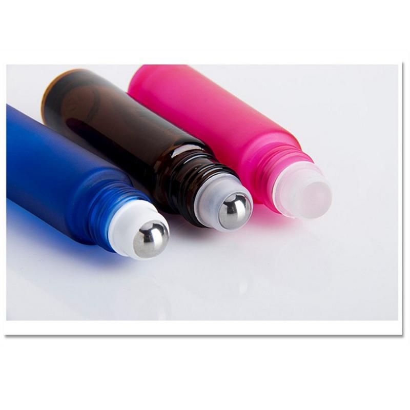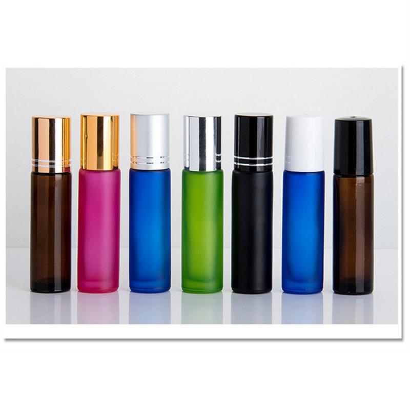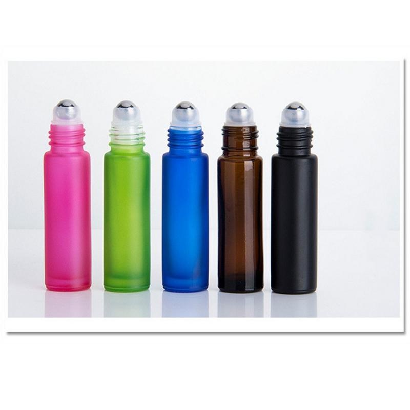 Flacon d'huile essentielle givré de couleur de 10 ml de haute qualité, avec billes en acier inoxydable, en verre, sans BPA.