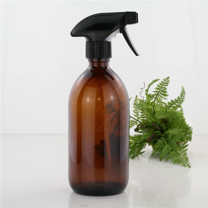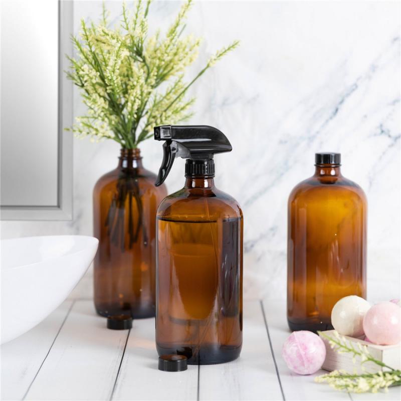 18/410Bouteilles rondes Boston en verre ambré de 16 oz avec pulvérisateur