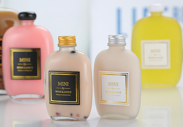 Large gamme d'utilisations : les bouteilles de boissons en verre épaissi sont divisées en bouteilles de jus, le corps de la bouteille est transparent et brillant, adapté au sous-emballage de boissons à base de jus, de café, de boissons froides, etc.
