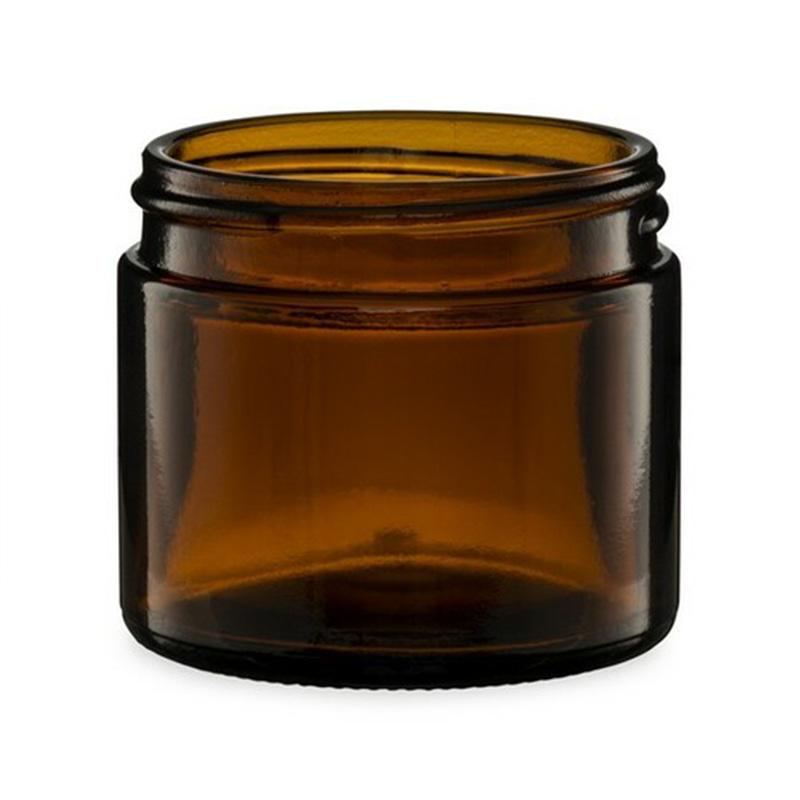 Pots à crème ambrés à parois droites de 30 g, destinés aux crèmes cosmétiques, fermés par un bouchon noir et un joint en plastique à l'intérieur. Pots en verre de haute qualité, disponibles en gros et personnalisables.