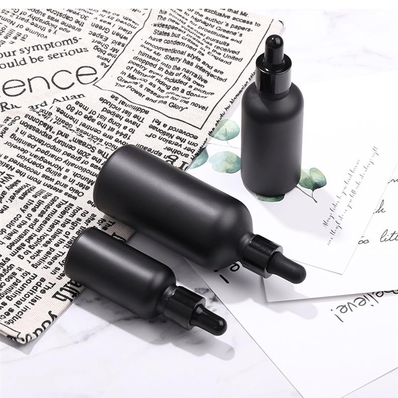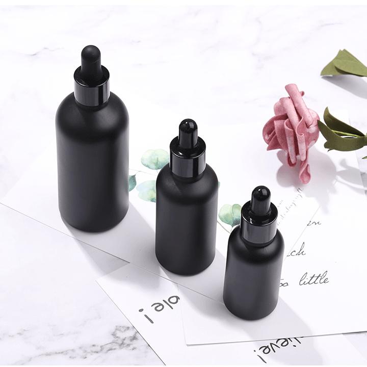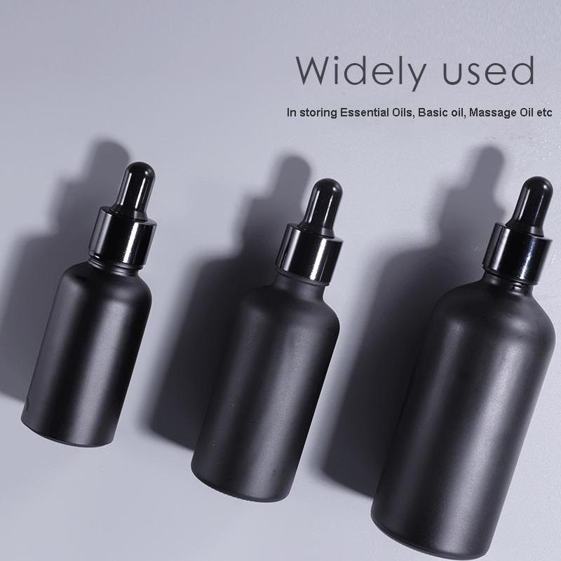 GlassFlacon compte-gouttes en verre noir mat pour huiles essentielles
